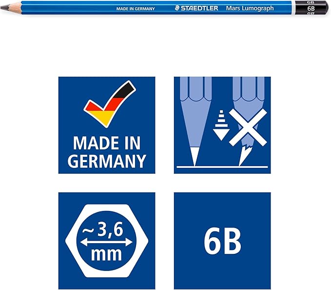 STAEDTLER Lumograph Graphite Drawing and Sketching Pencils 100G6, Set of 6 Degrees in an Attractive Storage Tin (100G6)