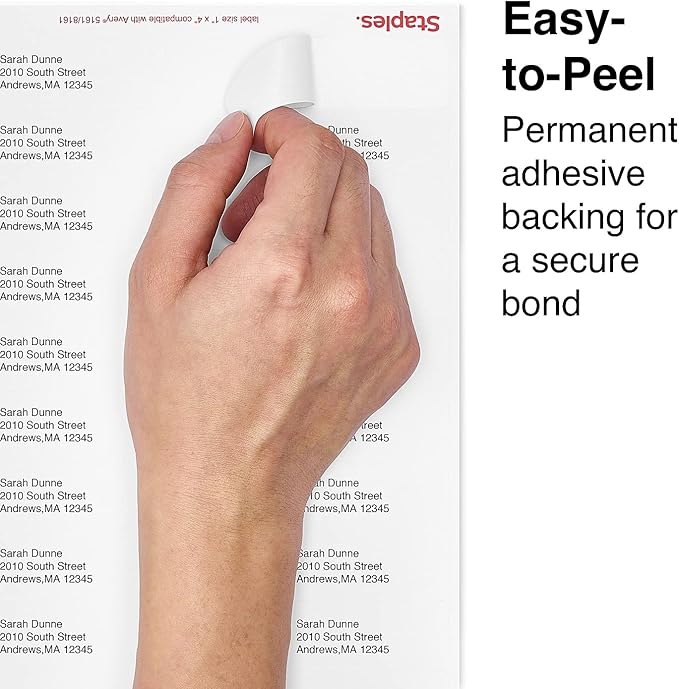 Staples® White Inkjet/Laser Address Labels 1" X 4", 5,000/Box