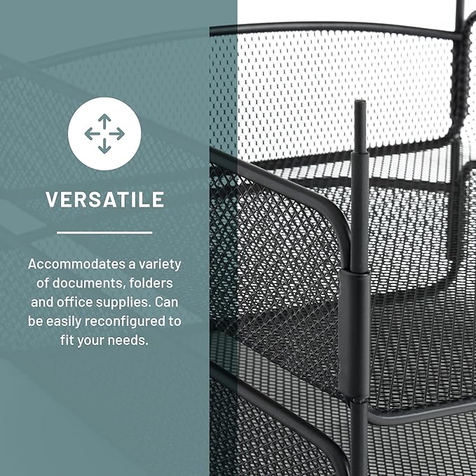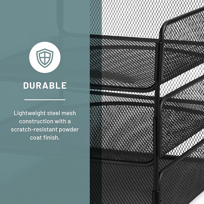 Safco Onyx Desk Organizer, 3 Trays, Office and Classroom Mailbox, Paper and Mail Sorter, Steel Mesh, Black