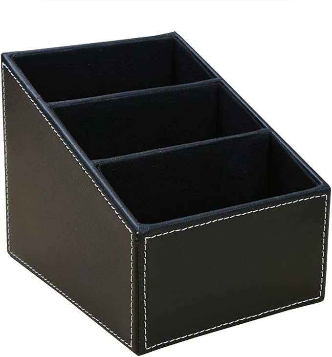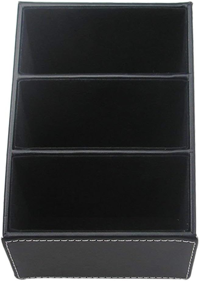 KINGFOM Remote Control Holder with 3 Compartments Pu Leather Remote Caddy Desktop Organizer Store Brush, Pencil, TV Guide, DVD, CD, Blu-Ray, Media Player, Heater Controllers(Black)