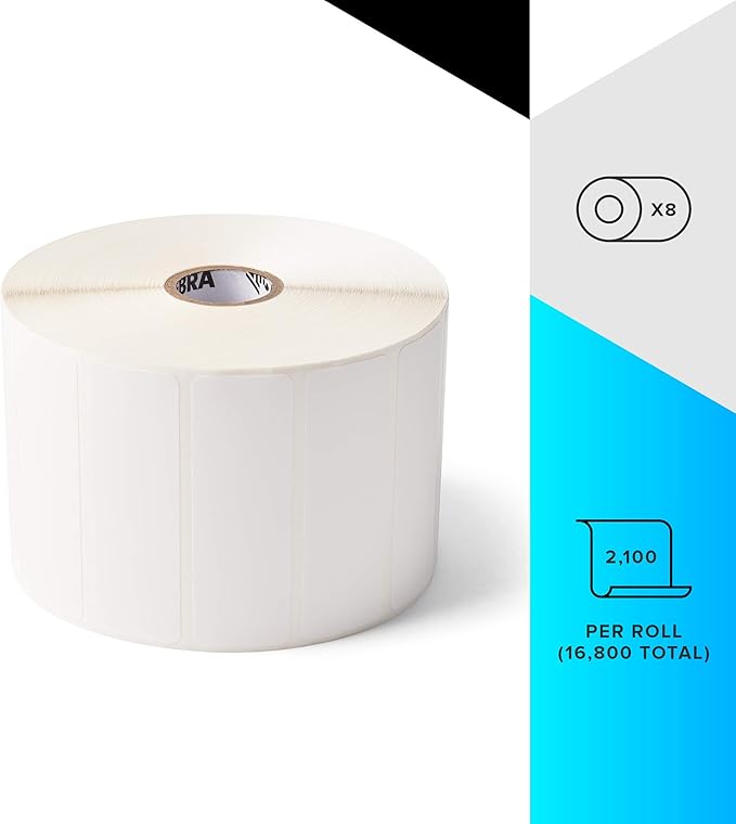 - Full length rolls: 3 x 1 in; 1 in core; 5 in roll diameter; 2,100 labels per roll; 8 rolls; 16,800 total labels