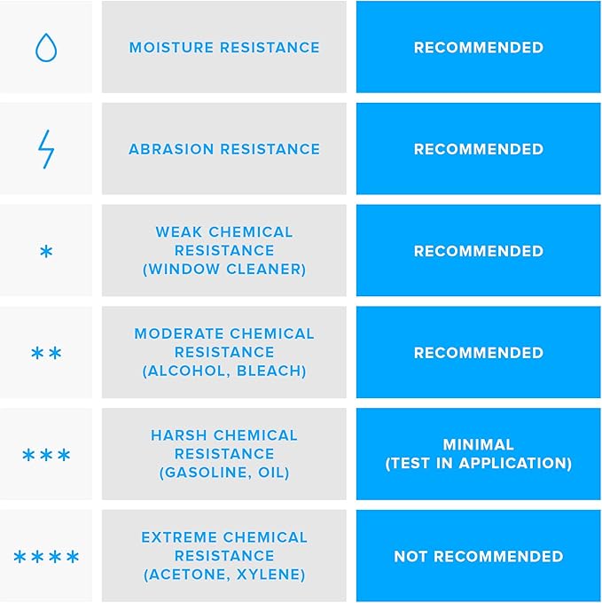 - Premium coated polypropylene label: Good smear/scratch resistance, excellent chemical resistance; can withstand temperatures from -65°F (-54°C) to 200°F (93°C)