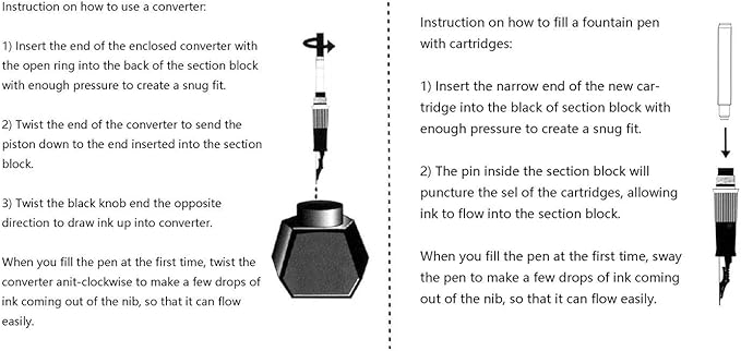 - Bent Nib Size: You can write large thick writing ( 1.5mm ) to Medium writing ( 0.7mm ) by varying the writing angle . If you want to write it in fine nib, you may write with it upside down. Some buyer also call the fude nib as a western italic fountain pen
