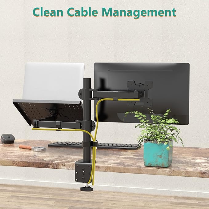 WALI Laptop and Monitor Stand, Fully Adjustable Monitor Mount and Laptop Tray for 1 Notebook up to 17 inch and 1 Screen up to 27 inch, 22 lbs, Weight Capacity (M001LP), Black
