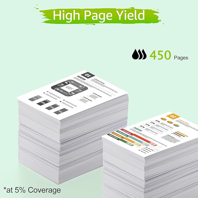- High-Capacity Printing: Black cartridge yields ~450 pages (5% coverage, A4/Letter). Achieve 40%+ savings compared to original HP cartridges