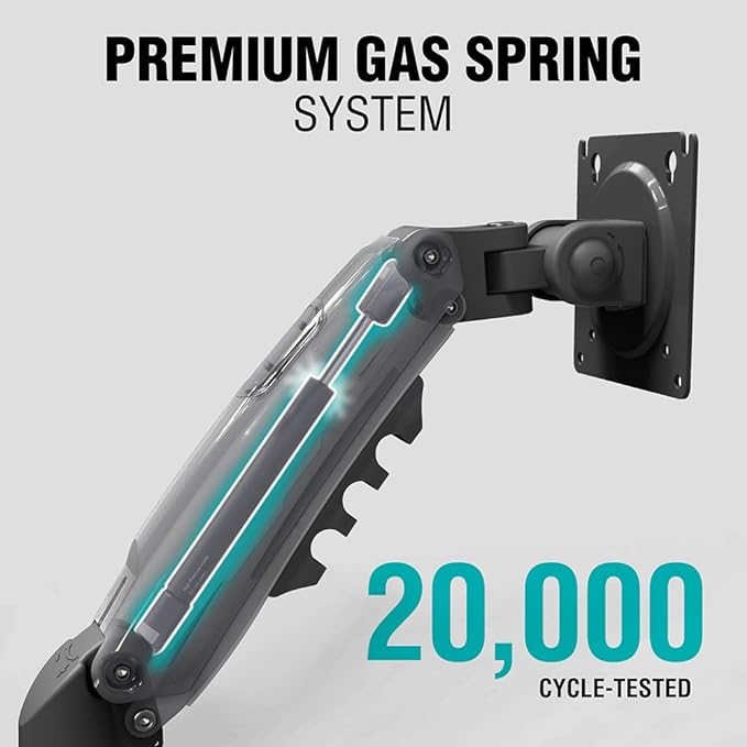 - CUSTOMIZED COMBINATION TO ENSURE ERGONOMY AT WORK! Adjust both displays individually. The articulating and stable arms allow easy movement in any direction, according to your needs. You can tilt the monitor -30°/+85°, combined with 360° landscape or portrait monitor rotation. The ultimate high level quality built-in gas spring provides easy height adjustment up to 16.14” (410mm), extends up to 20.87” (530mm) and retracts the arms in the best way to personalize your workstation.