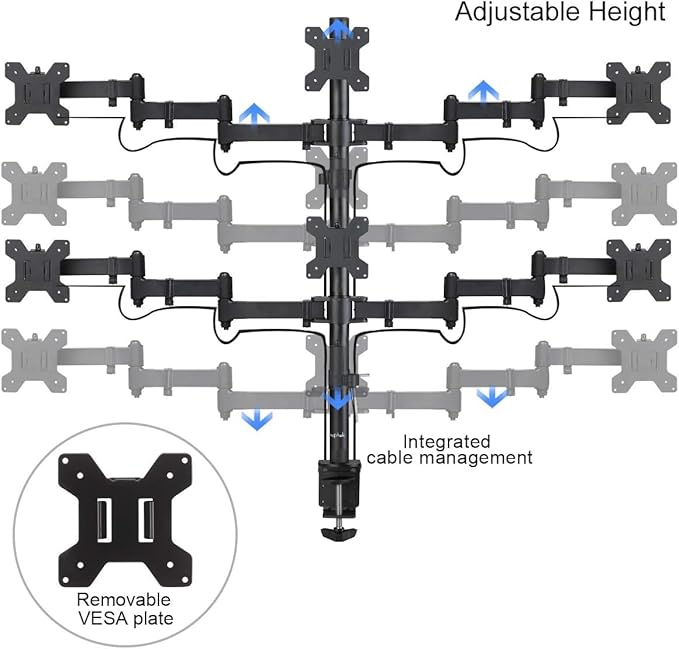 - Compatibility - Hex monitor mount ideal for most screens up to 27" and 22lbs each with 75x75mm or 100x100mm backside mounting holes.