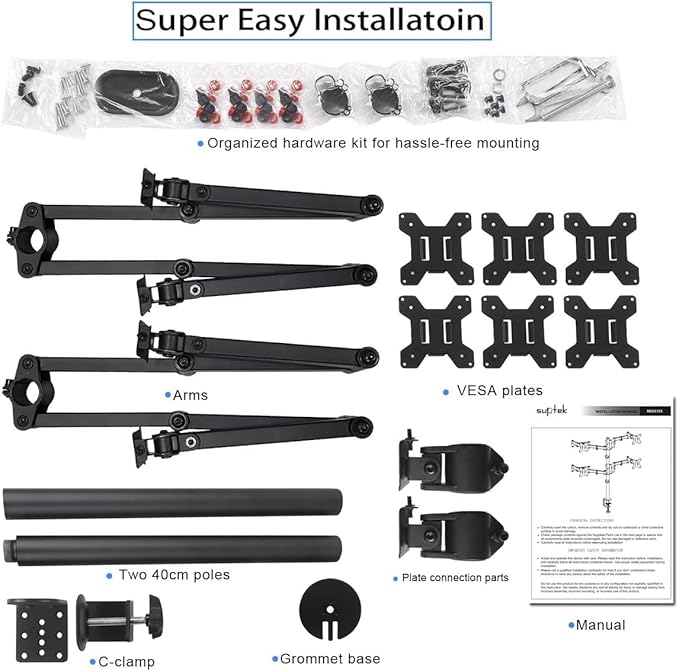 Suptek Hex LED LCD Monitor Stand up Desk Mount Extra Tall 31.5 inch Pole Heavy Duty Fully Adjustable Stand for 6 / Six Screens up to 27 inch (MD68126)