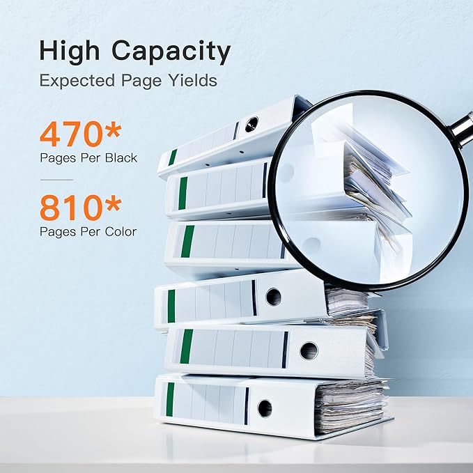 - Page Yield: Black is 470 pages per cartridge and Color is 810 Pages per cartridge at 5% coverage