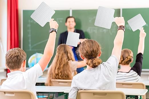 Flipside Products Rectangular Lined Dry Erase Answer Paddles, Double-Sided, Auction, Handheld Whiteboard, Handle Response Board, Classroom Dry Erase, Writing Practice, Pack of 12