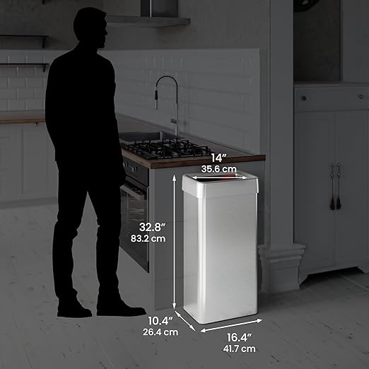 - EFFICIENT SPACE & MONEY SAVER – Rectangular shape fits snugly in corners, accommodating common tall kitchen recycling bags and trash bags. No expensive custom bags required, saving you money with iTouchless trashcans for kitchens.
