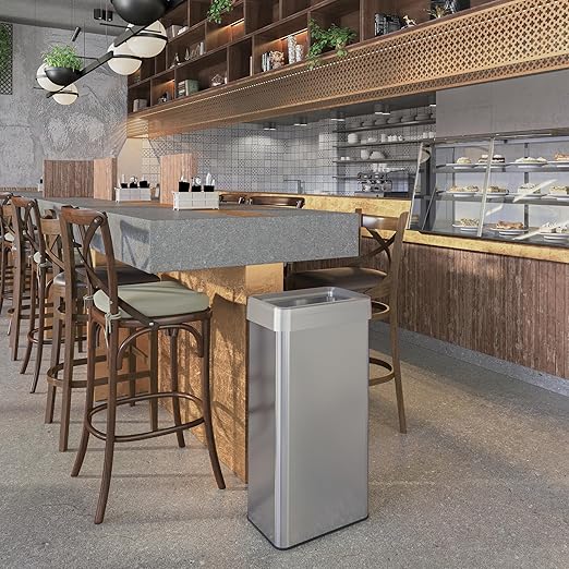 - QUICK & EASY DISPOSAL – Open Top design is perfect for busy homes, restaurants, restrooms, offices, lobbies, stores – quick & easy waste and recyclables disposal in an attracive stainless steel receptacle.