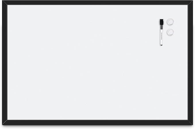 Amazon Basics Magnetic Dry Erase Whiteboard, 35"W x 23"H, Black Wooden Frame
