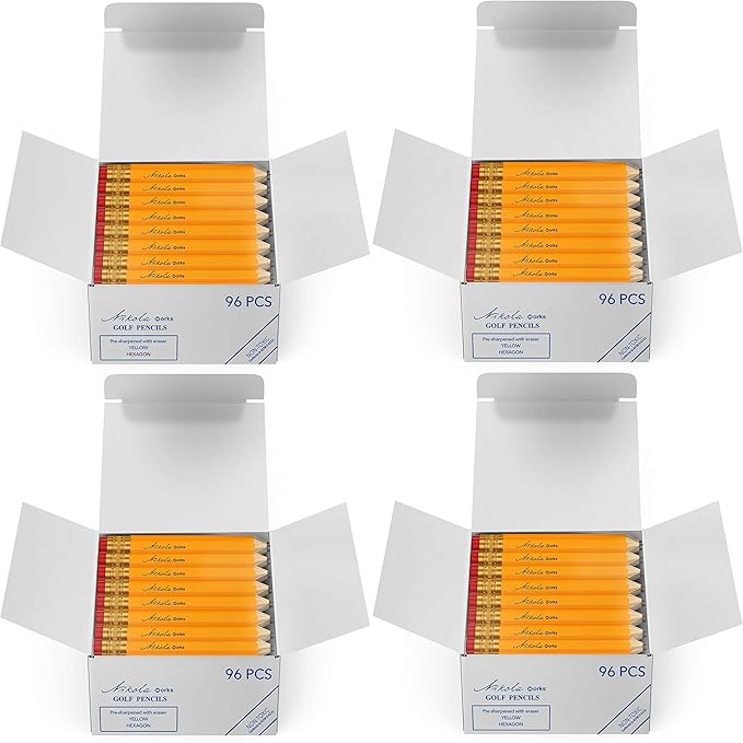 - Each Inner Box is Packed With 96 Premium Miniature #2 Pencils. Each Pencil is Made From High-Quality Wood for Clean Easy Sharpening, But They Are Already Presharpened So There's No Need To Sharpen, You Can Just Toss One In Your Shirt Pocket and Hit The Golf Course.