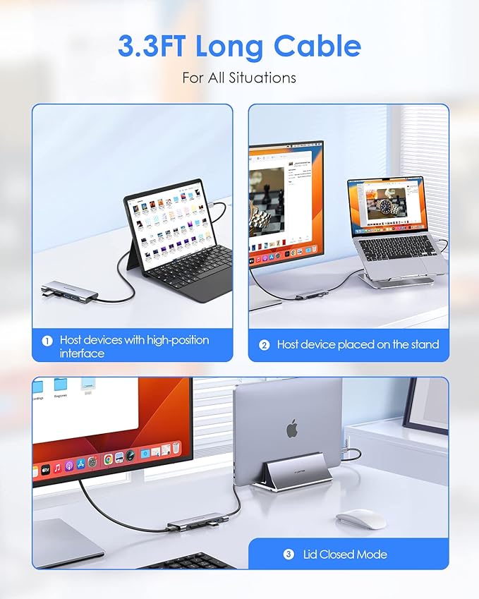 - Extra Cable Extension: This particularly features a 3.3 feet super long cable, making LENTION CB-C35-1M USB C hub an ideal solution to maximize your device's capability to create a more efficient workstation and freely adjust the desktop layout as you like