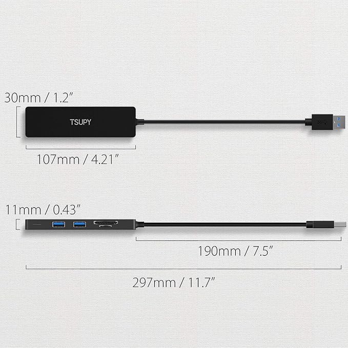- 【5 in 1 Capability USB Hub】Tsupy USB 3.0 Hub with 5 interfaces: 3 USB 3.0 ports, and SD/TF card readers. With the usb A adapter you could turn one of your computer’s USB port into three,3 USB devices work simultaneously is fine, such as keyboard, mouse,hard drives, USB disk and much more; the other 2-slots card reader for SD/SDHC/Micro SD/TF cards and more.Please use the memory card reader one or the other not both.