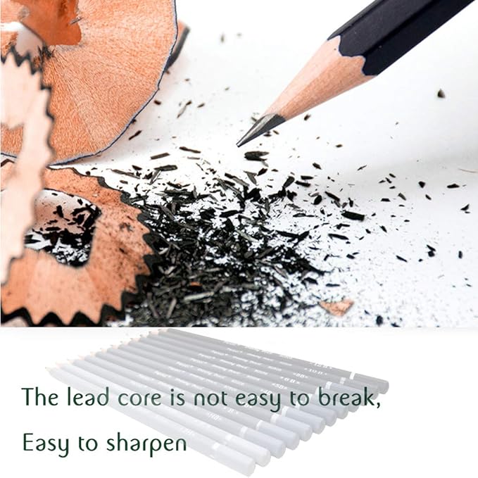 - High-quality Sketching Pencils --- 12 sketching pencils provide uniform distribution of graphite for unparalleled blending, smearing ability, unparalleled texture shading and enhanced detail. Durable lead can resist cracking and chipping.