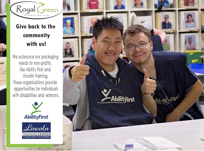 - ABOUT ROYAL GREEN: We owe our growth to customers who purchase our stickers. Royal Green is packaged by the business services program at Ability First Organization or LTC . Every purchase you make helps us make a difference.