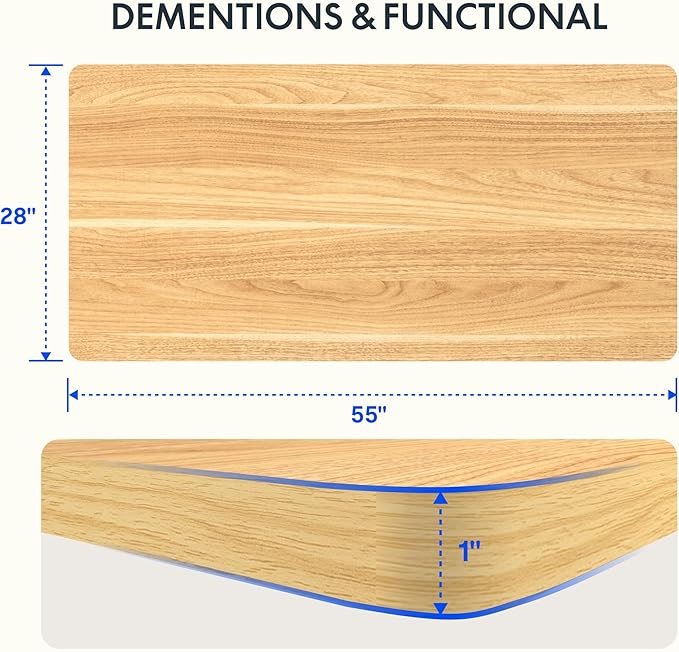 - AMPLE WHOLE-PIECE DESKTOP: With its whole-piece 1” eco-friendly desktop, this standing desk provides plenty of room for your computer setup, documents, and accessories, creating a well-organized and productive work environment. Due to hand measurements, desktop dimensions may vary slightly by 0 to 1”.
