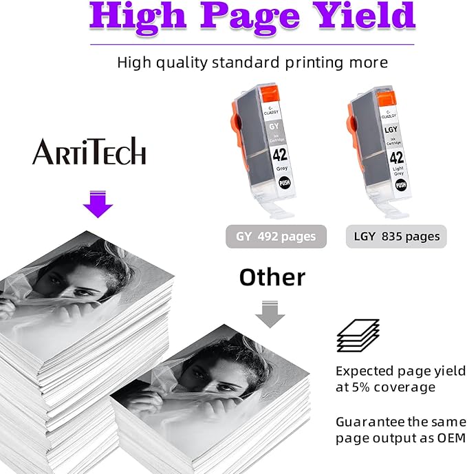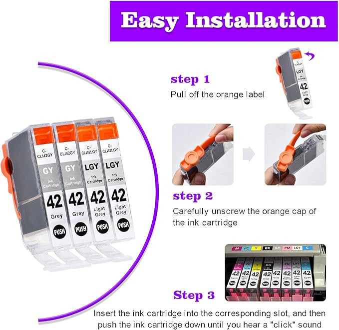- Package Includes: 4 pack of CLI-42 compatible ink cartridges. 2x CLI-42 Gray, For 2x CLI-42 Light Gray