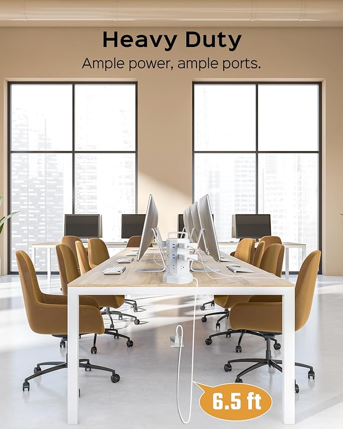 - ▶【18-in-1 Power Strip】With 12 widely spaced AC outlets(2.2inch) and 6 smart charging USB ports (2 USB C), this surge protector tower is powerful enough to accommodate most of your devices altogether at the same time in one place. Only one power strips with surge protection is enough for all your gaming setup, media essentials, phone, tablet, PC, laptop, computers, headphones, sound system, TV, router, monitor, camera, smartwatch, microphone, printer, fax machine, scanner, fan, etc.