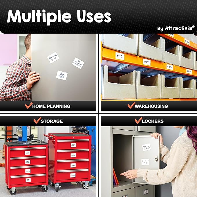 - Rewritable 100,000+ Times: Unlike flimsy labels that degrade over time, our white board magnetic labels are engineered to be erased and rewritten over 100,000 times without losing quality. The advanced coating prevents ink buildup, so every wipe restores a brand new surface, saving you money while reducing waste!