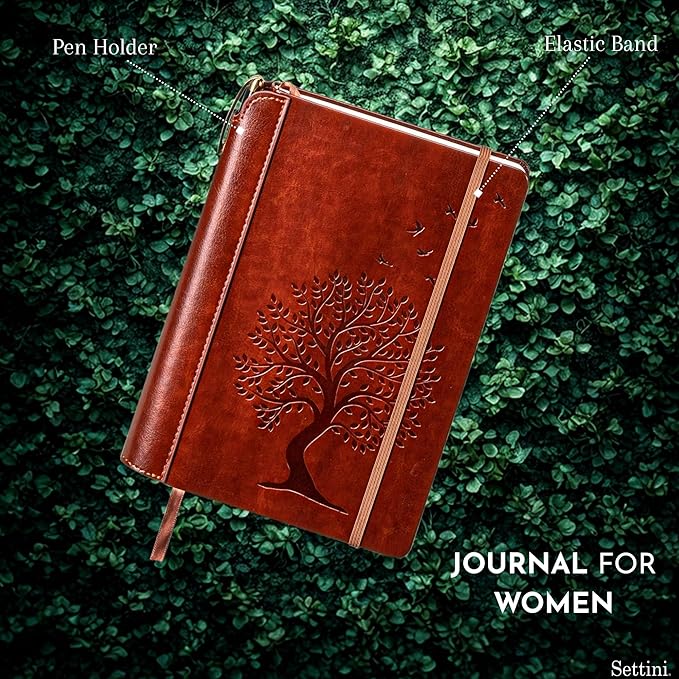 SETTINI® Tree of Life Journal Gift Set - Hardcover Vegan Leather, Unique Pen Holder, Lined, 192 Pages, 6 x 8.5 inches - Includes Pen for Writing and Travel - Birthday Gift