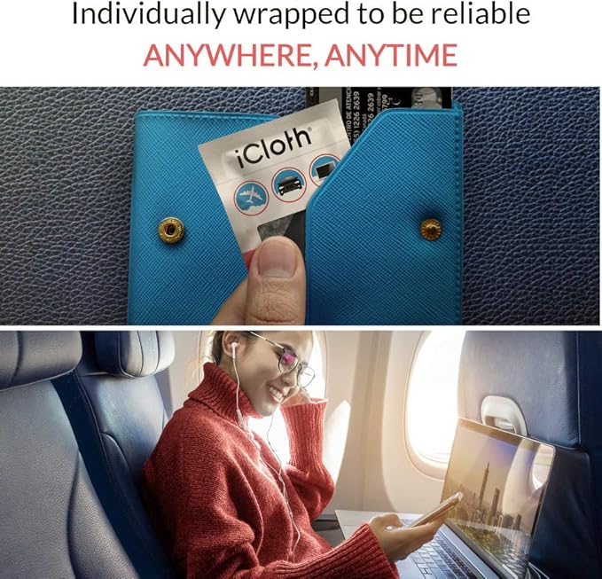 - PERFECT FOR ALL SCREENS AND ANTI-GLARE COATINGS – iCloth wipes effectively clean all types of screens with an ultra-pure formula of 70% isopropyl alcohol (IPA) and deionized water, ensuring no damage to sensitive coatings on smartphones, laptops, computer monitors, car touchscreens, and other electronics.