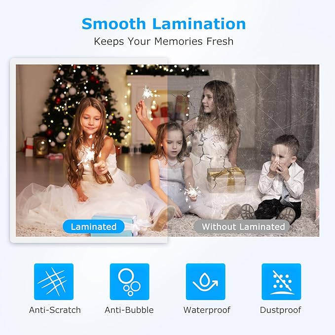 - 100% Patented Never Jam Technology: BONSEN laminator machine is designed with patented Jam Free technology, by adding the pressure plates between the rollers to prevent the pouch from being rolled in, protecting your items from wrinkling or curling