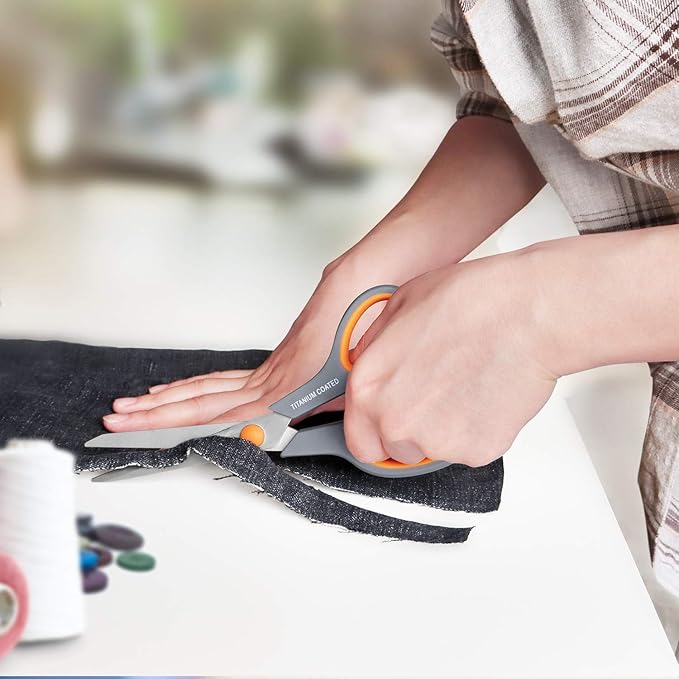 Scissors 8" Multipurpose Titanium Coated Sturdy Sharp Scissors Right/Left Handed Comfort-Grip Handles for Office Home School Sewing Fabric Craft Supplies Gray