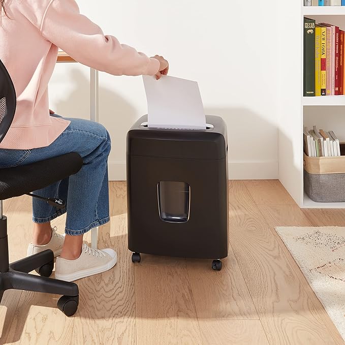 Amazon Basics 12 Sheet (new model) Micro Cut Paper and Credit Card CD Shredder With 6 Gallon Bin, Black