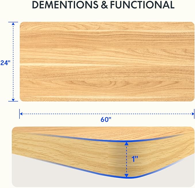 - AMPLE WHOLE-PIECE DESKTOP: With its whole-piece 1” eco-friendly desktop, this standing desk provides plenty of room for your computer setup, documents, and accessories, creating a well-organized and productive work environment. Due to hand measurements, desktop dimensions may vary slightly by 0 to 1”.