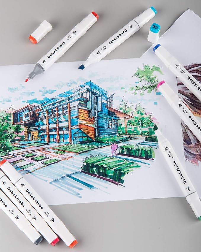 Dabo&Shobo 96 Color Dual Tip Alcohol Art Markers for Kids and Adults - Fine & Chisel Tips for Sketching and Coloring