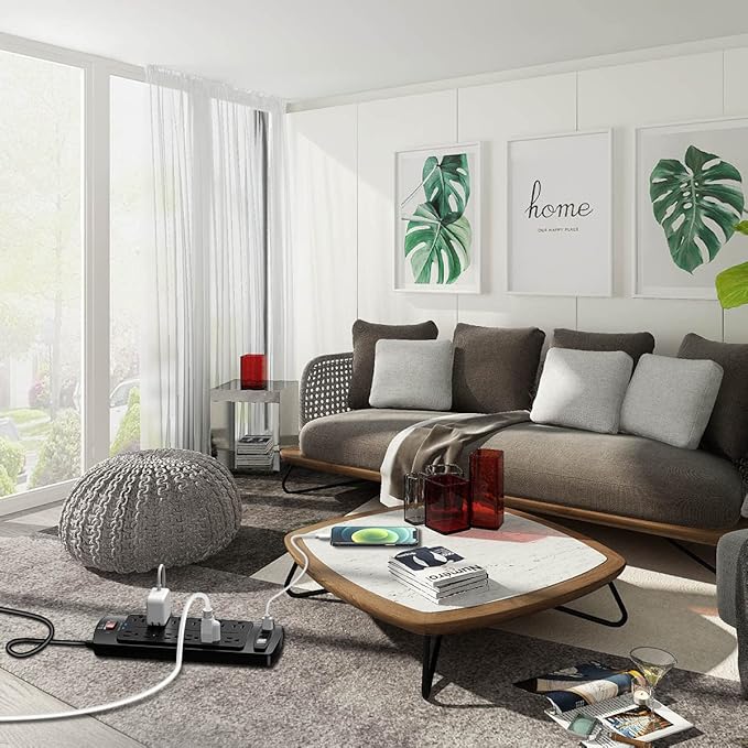 - 【Safety and Certificate】- ETL safety certified, with extension cord and other major components certified by UL. The over current protection switch limits the power strip's working current to certain setting, so it will not get hot during usage. Environmental protection and fire-resistance PC shell with flame retardant at 1382℉ makes it more durable and longer lifetime.