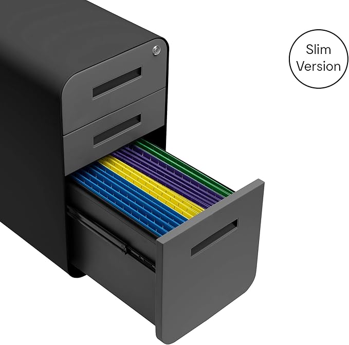 Laura Davidson Furniture Stockpile Slim 3-Drawer Mobile File Cabinet with Lock - Under Desk Metal Filing Cabinet, Legal/Letter File Folders, Wheels and Stationary Feet, Pre-Assembled, Black/Grey