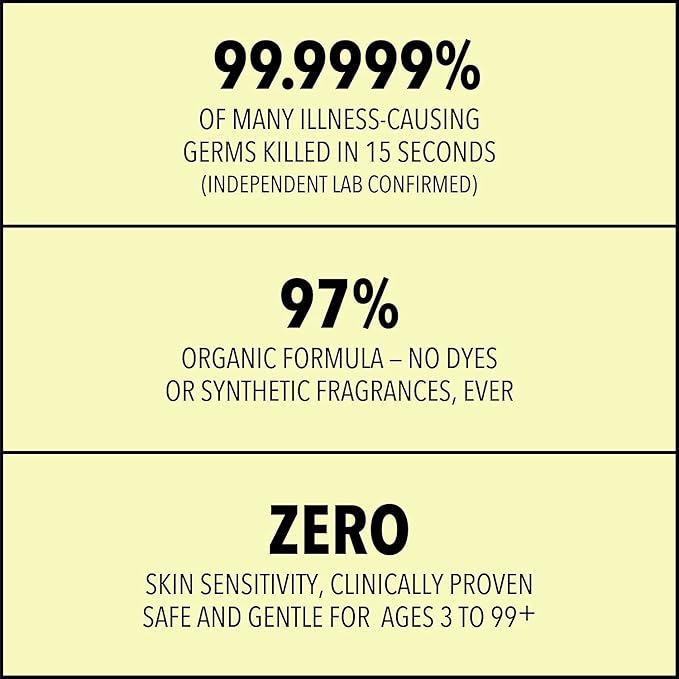 - 97% Organic Ingredients, 70% v/v USDA Organic Sugar-Cane Ethyl Alcohol, Green-Certified, USDA Certified Biobased Product 100%