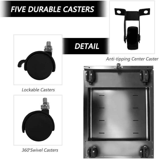 - ❤Lockable Mobile File Cabinet: 3 Drawer filing cabinet shipped fully assembled with 4 casters. You only need to assemble the wheels after receiving the goods to obtain a complete vertical file cabinet. 1 lock secures all the three drawers.Tips: 2 keys should be kept separately in case of losing.