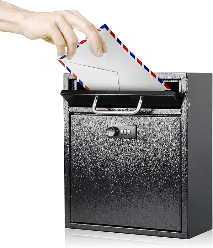 KYODOLED Steel Combination Lock Mail Boxes Outdoor,Locking Wall Mount Mailbox,Security Key Drop Box,12H x 10.51L x 4.68W Inches,Black Large