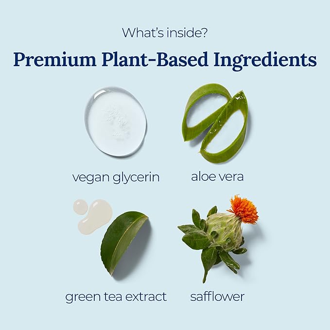 - UNIQUE BLEND: Dive into our unique blend of nine plant-based ingredients, including organic essential oils, anti-aging lingonberry, and antioxidant-rich green tea extract. Moisturizing safflower oil, soothing inner leaf aloe vera, and hydrating vegan glycerin combine with nutrient-dense chlorella and spirulina for an unparalleled hand care experience. Feel nourished, smooth, and refreshed with every use, and enjoy the soothing sandalwood / santal scent.