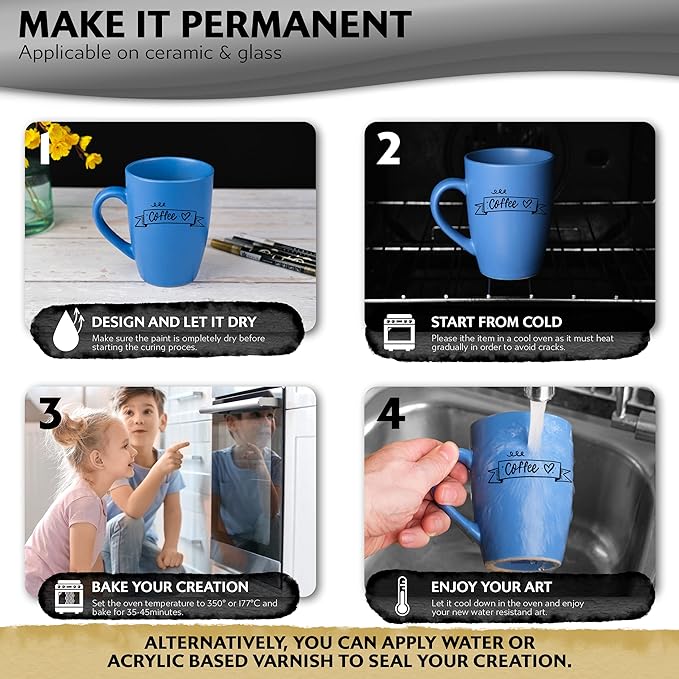 - VERSATILITY – 1 x White, 1 x Black, 1 x Gold and 1 x Silver marker mettalic pen suitable to work on wood, fabric, glass, ceramic, stones and other surfaces