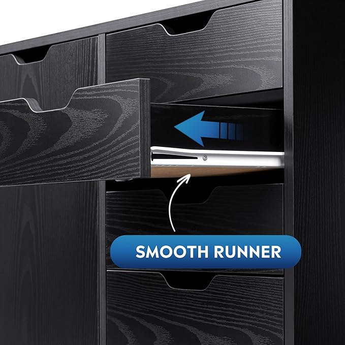 DEVAISE 5-Drawer Wood Dresser Chest with Door, Mobile Storage Cabinet, Printer Stand for Home Office, Black