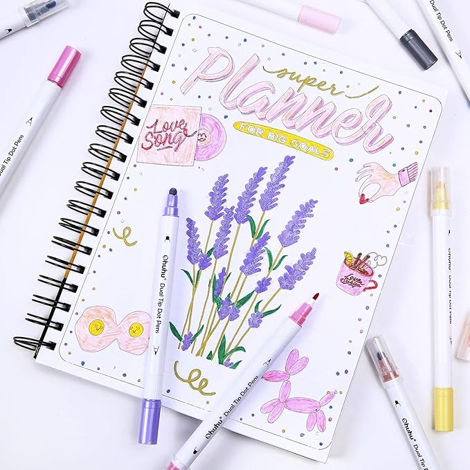 Ohuhu Dual Tip Dot Markers: 15 Colors Dot Marker Pens (Fine & Dot) for Kids Adults Water-Based Ink Metallic & Regular Colors Dot Pens for Journaling Scrapbooking DIY Highlighting Drawing Markers