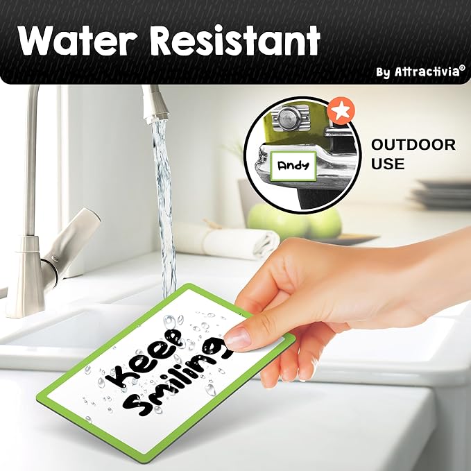 - Rewritable 100,000+ Times: Unlike flimsy labels that degrade over time, our white board magnetic labels are engineered to be erased and rewritten over 100,000 times without losing quality. The advanced coating prevents ink buildup, so every wipe restores a brand new surface, saving you money while reducing waste!