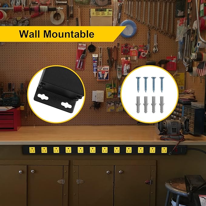 - Easy Install Wall Mount Power Strip: Wall mountable, comes with screws used to mount it to a bench, table, pegboard, or wall; easy to install; 2 mounting holes on both sides provide convenient mounting way