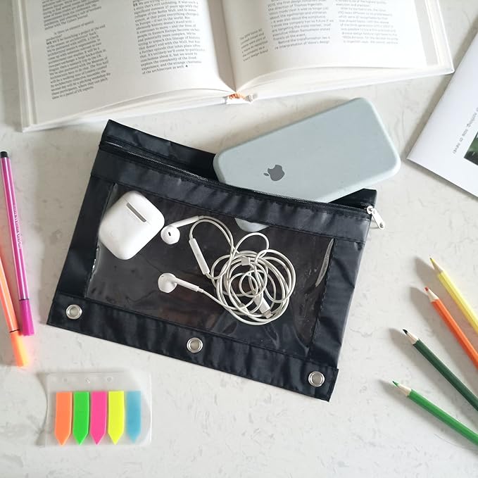 - 3 Ring Pencil Pouch: Zipper pouch with rivet enforced holes perfectly compatible with all standard 3 ring binders, widely used in college, school, office, home