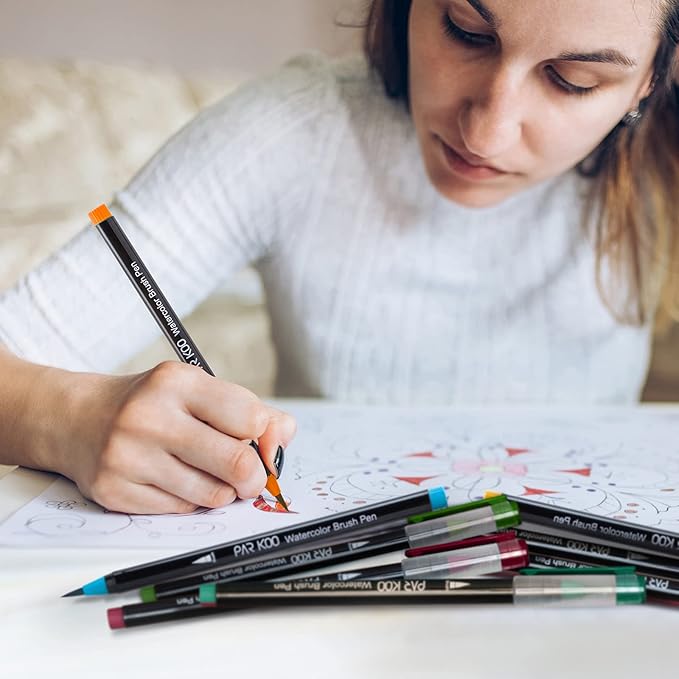 - Like Real Brushes: Use the tip's tapered point to create thin lines; Brush down for thicker lines & strokes; This convenient set including water pen which are compact and ideal for on-the-go artists (of any age) - no mess, no fuss just relax and paint