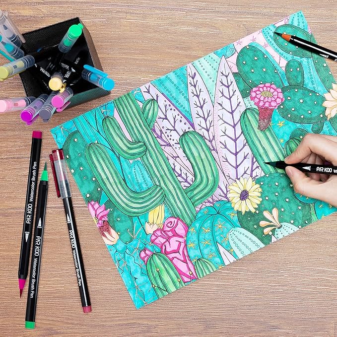 - 24+1 Watercolor Brush Pens: 24 colors + 1 blending brush pens; Flexible nylon brush pens are filled with non-toxic odorless water-based highly pigmented ink; Use these for coloring, illustrating, painting, sketching, blending and doodling