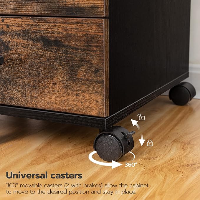 - Quick Moving Casters: This small file cabinet comes with 4 casters for free movement. The wheels slide smoothly and flexibly, with wear-resistant and noise-reducing functions, and the 2 wheels with brakes are gently locked to securely fix the storage box