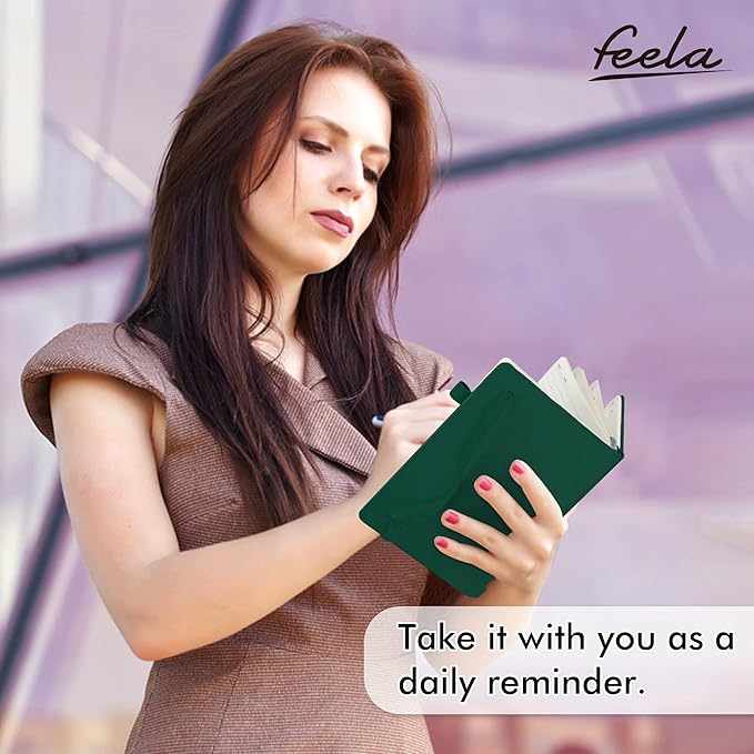 - Feela 12 Pack Classic Ruled Notebooks contains 12 classic dark green ruled sturdy cover notebooks and 12 Black Retractable Pens. Each of the notebooks measures 8.3” x 5.1”, which is perfect to carry and easily held by young girls and boys. These black cute pens are customized to be placed in the pen holder, which is pretty convenient.