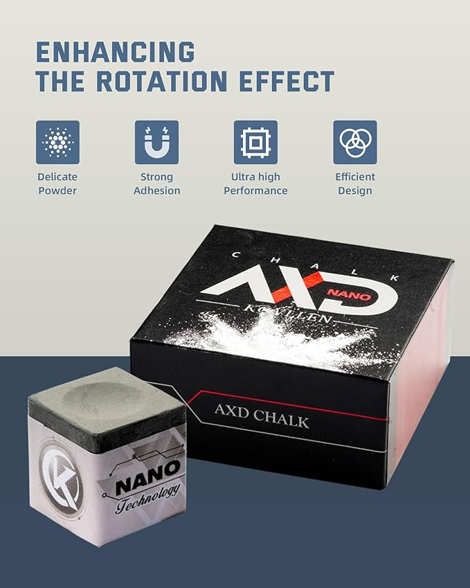 - Nano Technology: KONLLEN pool hand chalk utilizes revolutionary nano-materials, ensuring an ultra-fine texture with superior adhesion. It resists flaking and spreading, making it more environmentally friendly and healthier. With KONLLEN, you can achieve the best feel and performance in any condition.